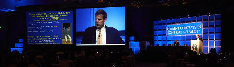 For over 30 years we have worked with a client to produce shows for orthopedic surgeons from around the world. We have taken them from the stone age of slide stacks on platforms 20' in the air to advanced technology using remote cameras and a staging area that looks like the underside of an air craft carrier (according to one of our faculty members). We now produce two shows a year. In Orlando in December and Vegas in May. Between the two shows attendance is upwards of 3,000 participates a year. Here are a few views and a short video that shows what the content of a meeting contains. Iād love to talk to you about your conference needs!